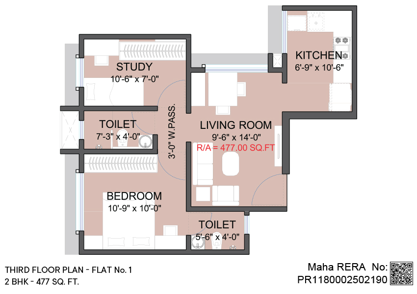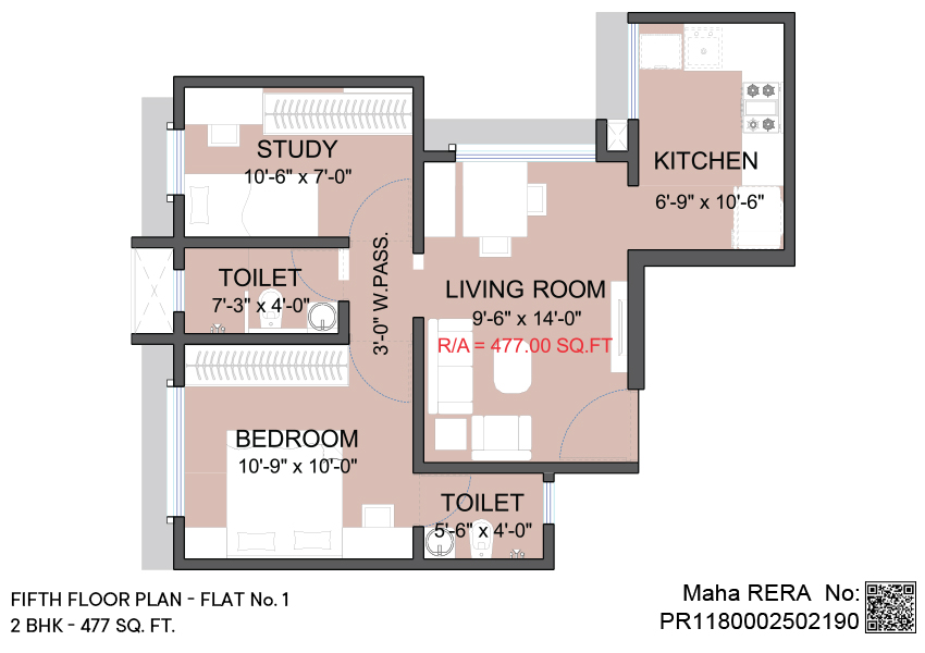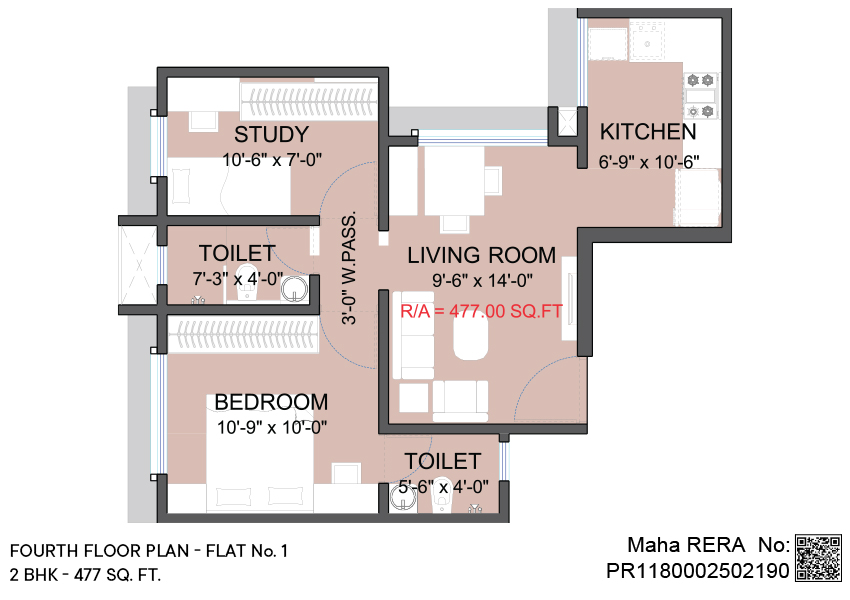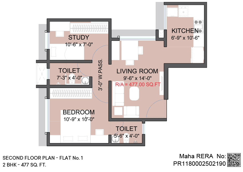 2 BHK | Area - 477 Sq.ft