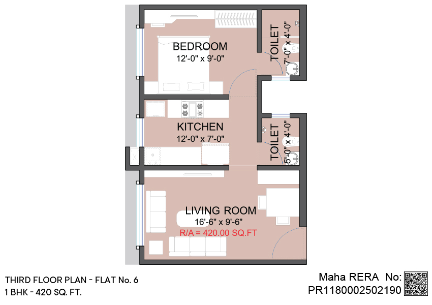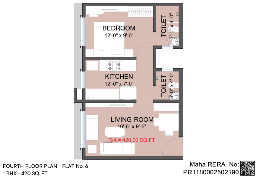 1 BHK | Area - 420 Sq.ft