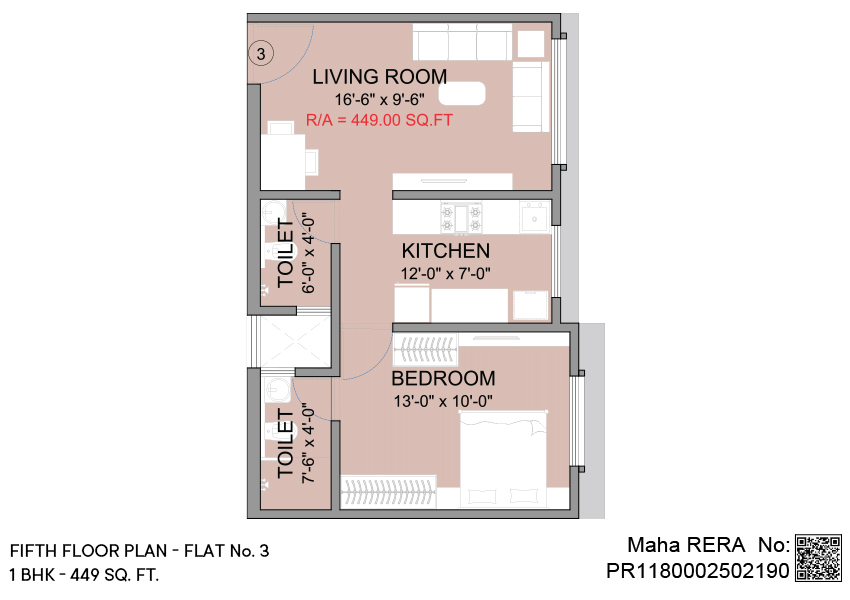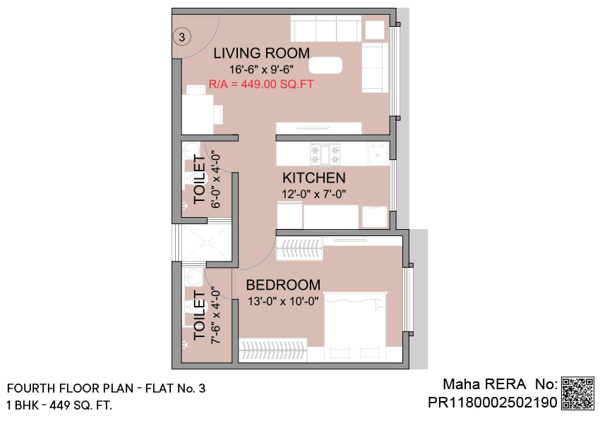 1 BHK | Area - 449 - Sq.ft