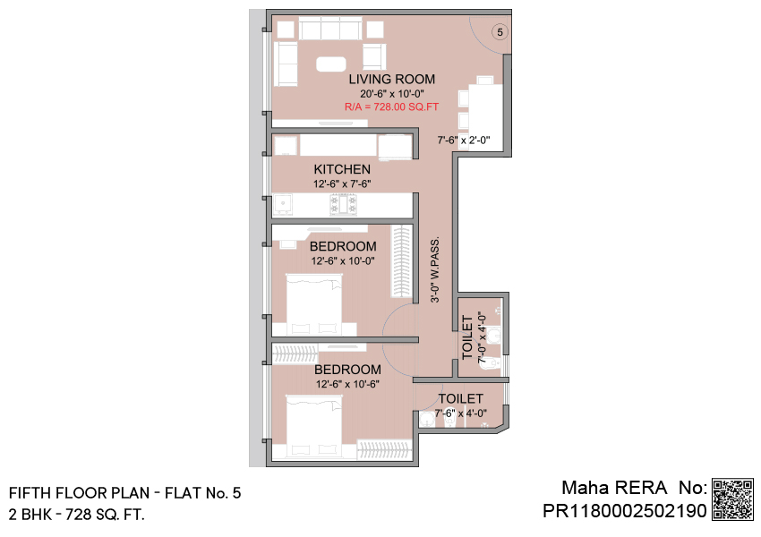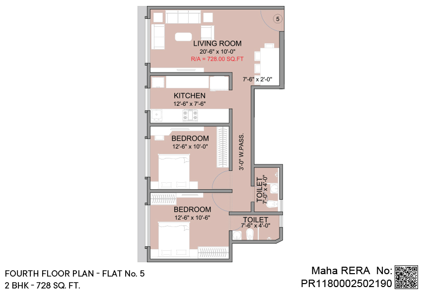 2 BHK | Area - 728 - Sq.ft