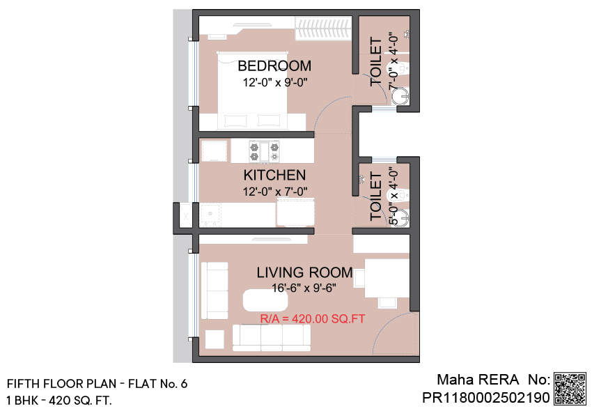 1 BHK | Area - 420 Sq.ft