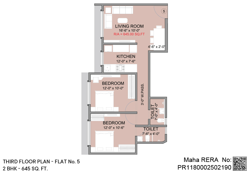 2 BHK | Area - 645 Sq.ft