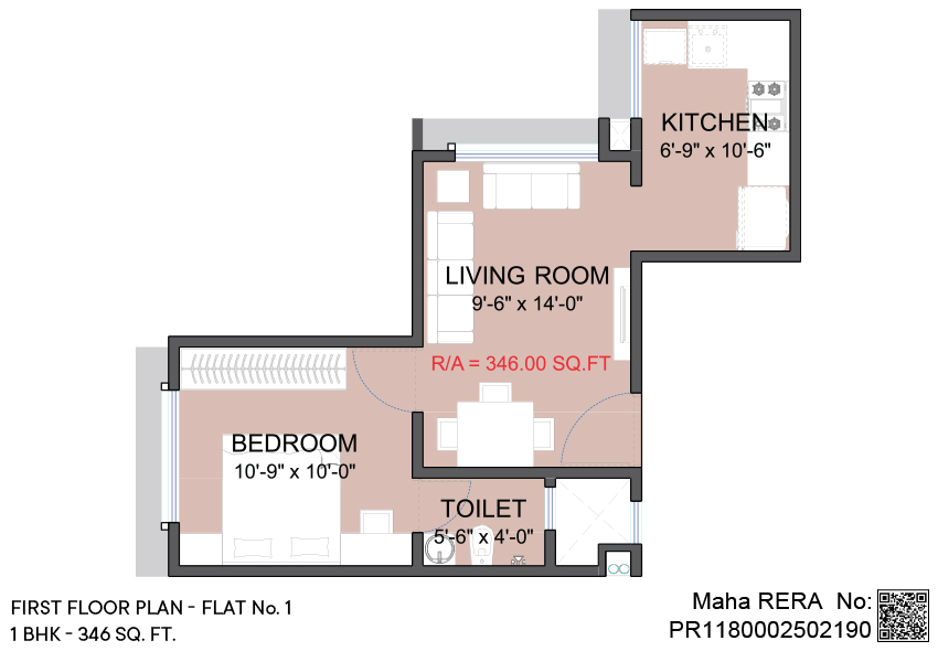 1 BHK | Area - 346 Sq.ft