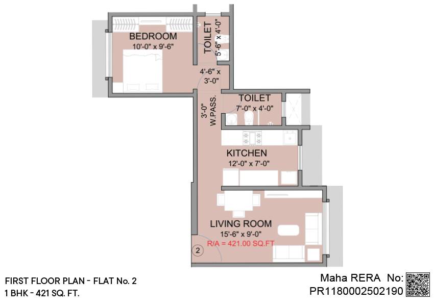 1 BHK | Area - 421 Sq.ft